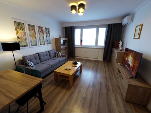 umývačka riadu, televízor a iné malé spotrebiče. Byt je klimatizovaný. Samozrejmosťou je Orange optický internet.